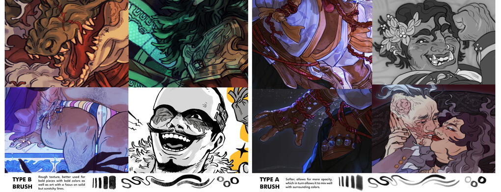 I mainly work on Photoshop CC17, sometimes on Clip Studio Paint. For 3D I use Blender and ZBrush.I got all my brushes from other artists, my main one is simply named "nice..." and I unfortunately cannot remember who I got it from;Some other brush packs & tools: LejebokaTools, devinsSparklies, Salander Brushes INK, jensbrushes, houstonsharp, johnsilva, JJcanvas, Webang111, Frank's Inkes, Frank's Real Pencils, lorandesore;For CSP I simply have too many but you'll likely find 'em as the most popular ones or shared through twitter.